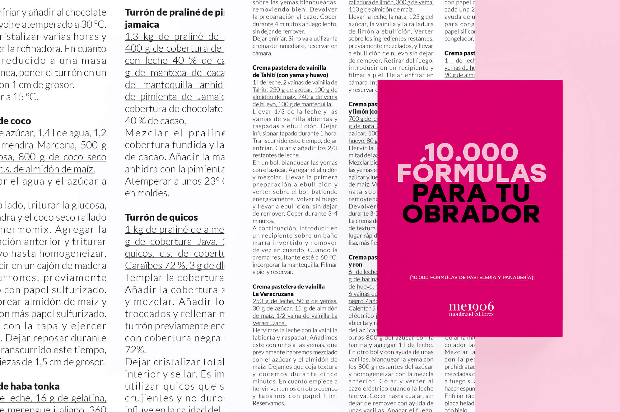 Nace un nuevo formulario de pastelería y panadería mucho más completo y extenso con las ’10.000 Fórmulas de Pastelería y Panadería’ a lo largo de más de 1.000 páginas. Las 10.000 elaboraciones detalladas de esta obra se dividen en más de 30 categorías generales, entre las que se pueden encontrar las siguientes: Helados y sorbetes, Mousses, Masas Hojaldradas, Crujientes y Salsas Dulces. Todas ellas se desglosan llegando a obtener hasta más de 200 subcategorías. Por ejemplo, dentro de Masas Batidas se encuentran Bizcochos, Cakes, Dacquoises, Esponjas y Financiers. En definitiva, un Manual imprescindible en todo obrador, pensado y clasificado alfabéticamente para facilitar la búsqueda de fórmulas y la aplicación técnica de éstas en cualquiera creación pastelera o panadera.