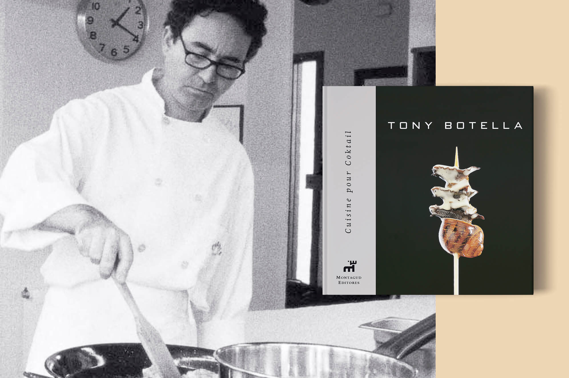 Tony Botella est un professionnel renommé du secteur qui, après plusieurs expériences et son passage chez Grupo Paradís en tant que directeur R&D, a ouvert son propre atelier de cuisine. C’est un centre spécialisé dans le conseil gastronomique, la formation des professionnels et la restauration. Mais c’est aussi l’espace dans lequel Bottle se consacre à sa passion: la recherche culinaire et le développement de nouvelles techniques. Les élaborations présentées dans ce livre sont le résultat de son désir constant d’évoluer et de découvrir de nouveaux procédés et textures. Kitchen for Cocktail illustre la volonté de Bottle de rompre avec l’idée traditionnelle des pièces d’apéritif. C’est, comme le définit l’auteur, une «cuisine pour manger debout», qui n’a pas besoin de couverts ni de recourir au support panario si courant dans les cocktails classiques. Il existe plus de 50 élaborations originales d’une cuisine spécialement conçue pour la dégustation en cocktail, regroupées sous des titres suggestifs tels que «bonbons de foie», «ragoûts dans une tasse» ou «makicanapés».
